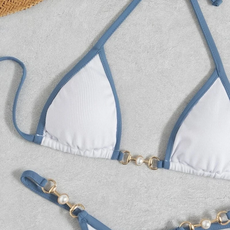 Custom Logo Bathing Suit Mini Thong Bikini Set With Diamonds 40560