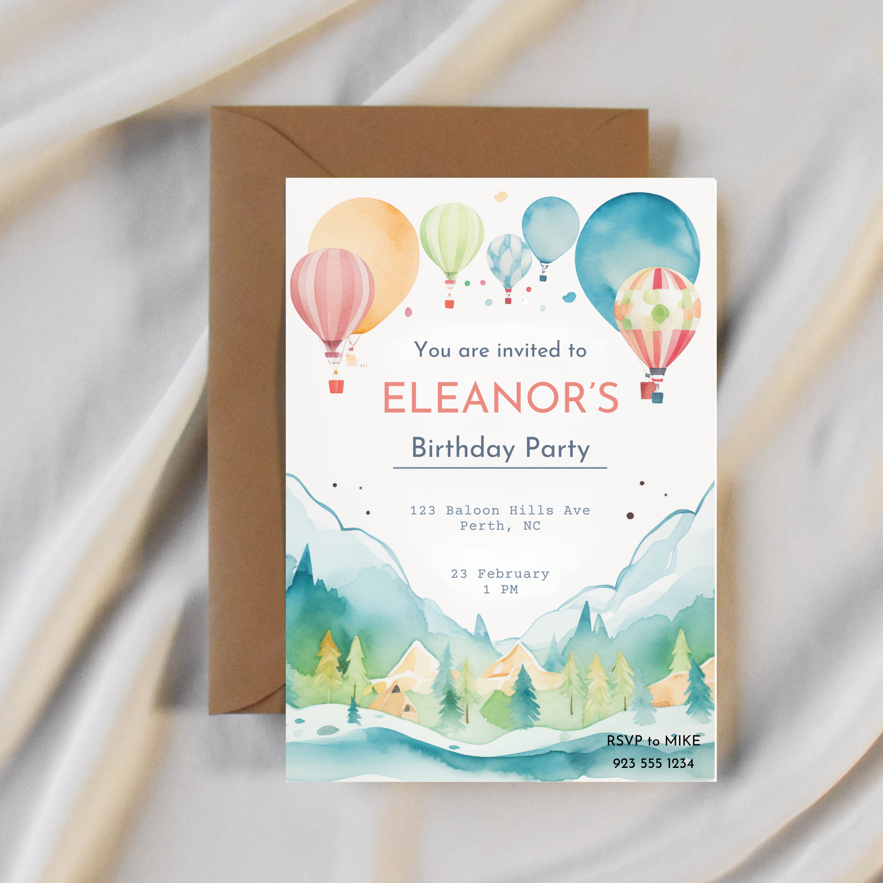 Tag : Customizable Hot Air Balloon First Birthday Invite Watercolor Birthday Invite First Birthday