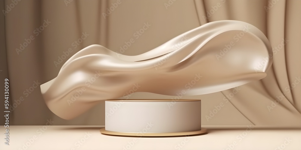 D Display Podium Beige Background With Pedestal And Flying Nude Color Silk Cloth Curtain is a popular picture for sexy and hot.