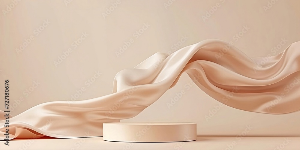 D Display Podium Beige Background With Pedestal And Flying Nude Color Silk Cloth Curtain is a popular picture for sexy and hot.