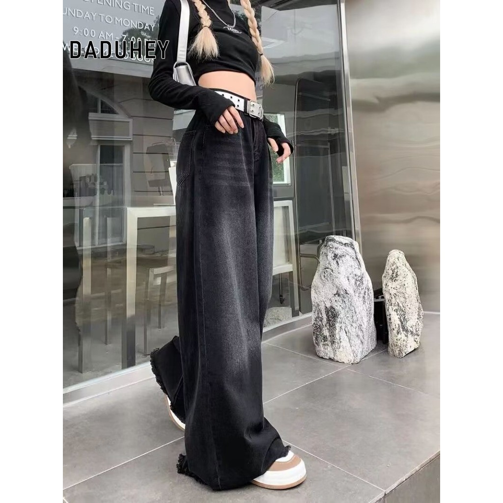 Tag : Daduhey Women S American Style Retro High Waist Mop Draping Jeans Loose Slimming Hot Girl Frayed