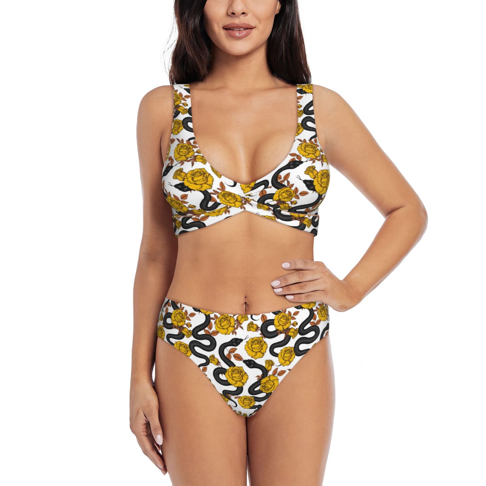 Daiia Snake And Rose Women S Bikini Set Two Piece Swimsuit High Waisted Bikini Adjustable Straps is a popular picture for sexy and hot.