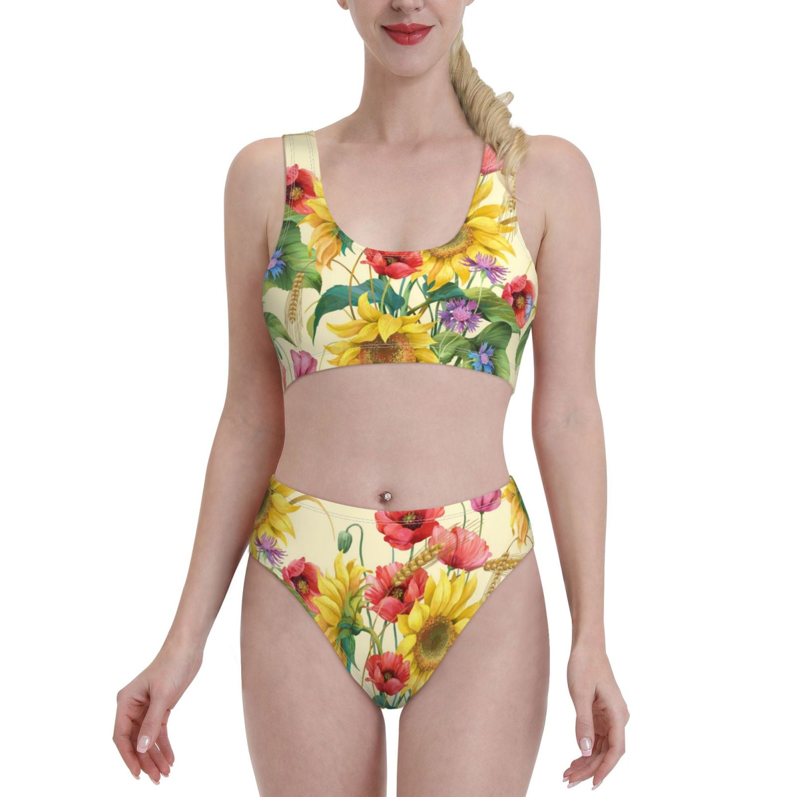 Daiia Sunflower Cornflower Poppy Women S Bikini Swimsuit Two Piece Swimsuit High Waisted Slim is a popular picture for sexy and hot.