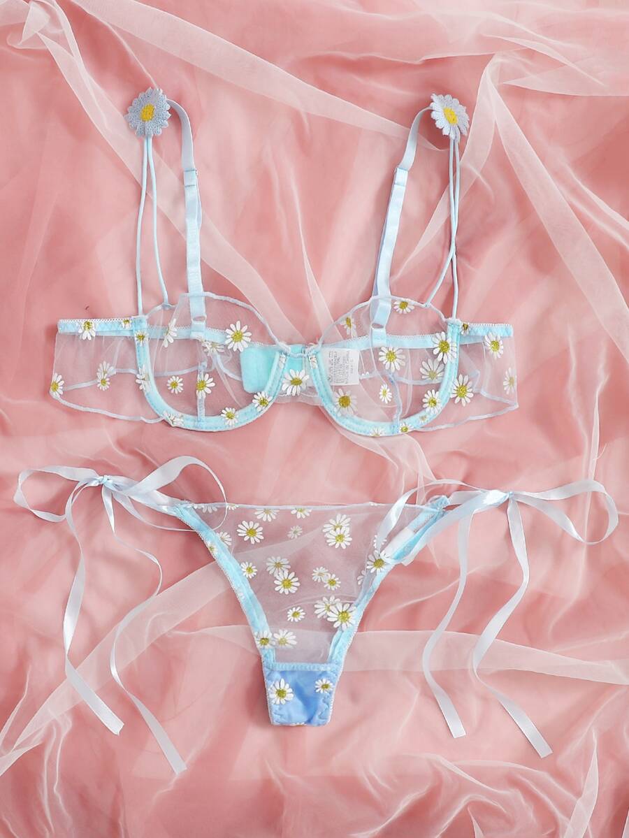 Daisy Underwire Sheer Mesh Lingerie Set Shein Uk 16128