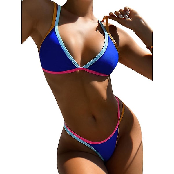 dam Color Block Baddräkt Bikini Set String sommar Beach Baddräkt Badkläder Blue S Fyndiq