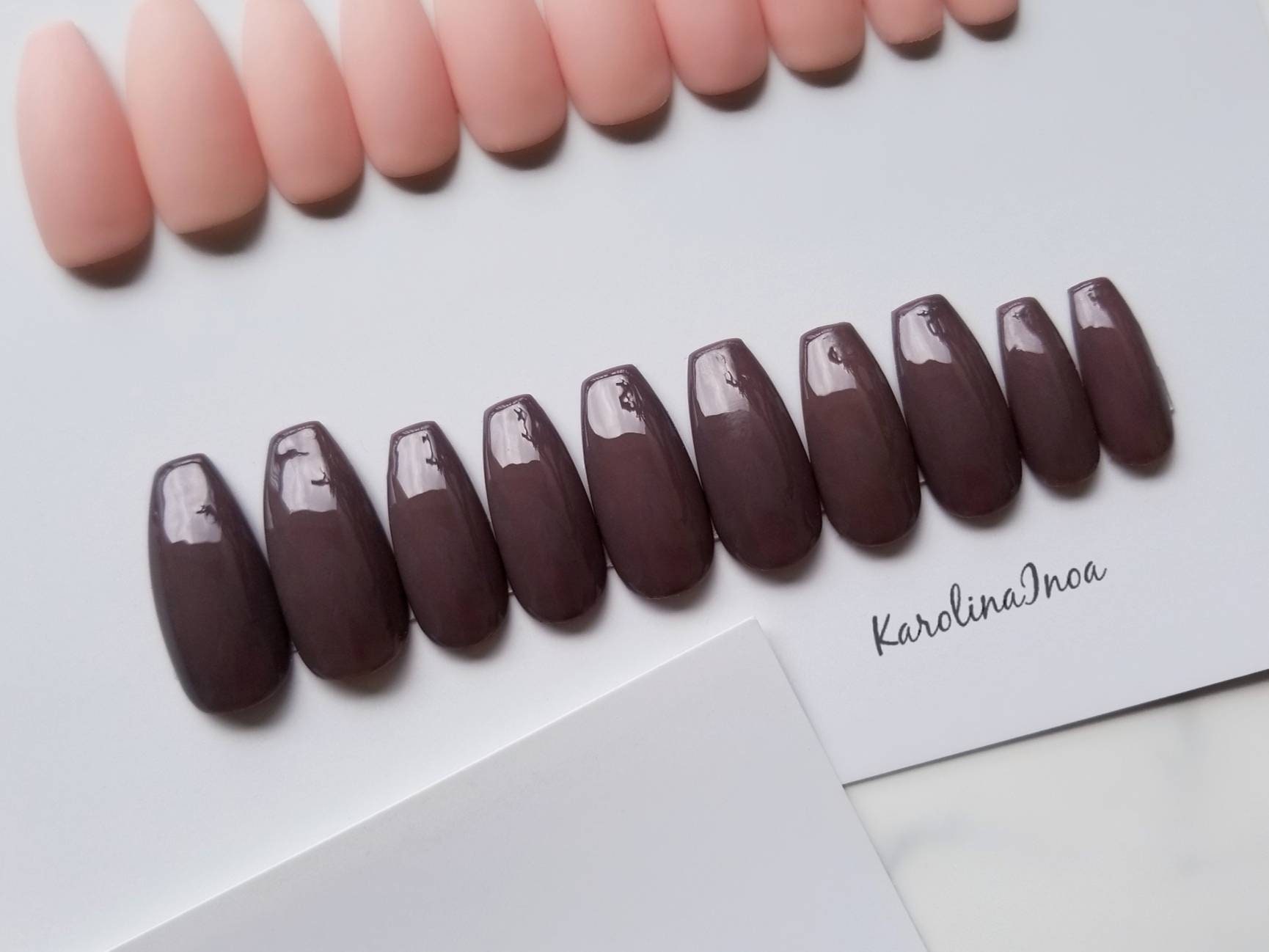 Tag : Dark Nude Press On Nails Brown Hand Painted With Gel For The Best