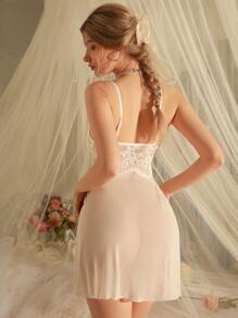 Delicateallure Contrast Lace Harness Mesh Babydoll Sexy Lingerie Dress Bridallingerie Shein Usa is a popular picture for sexy and hot.