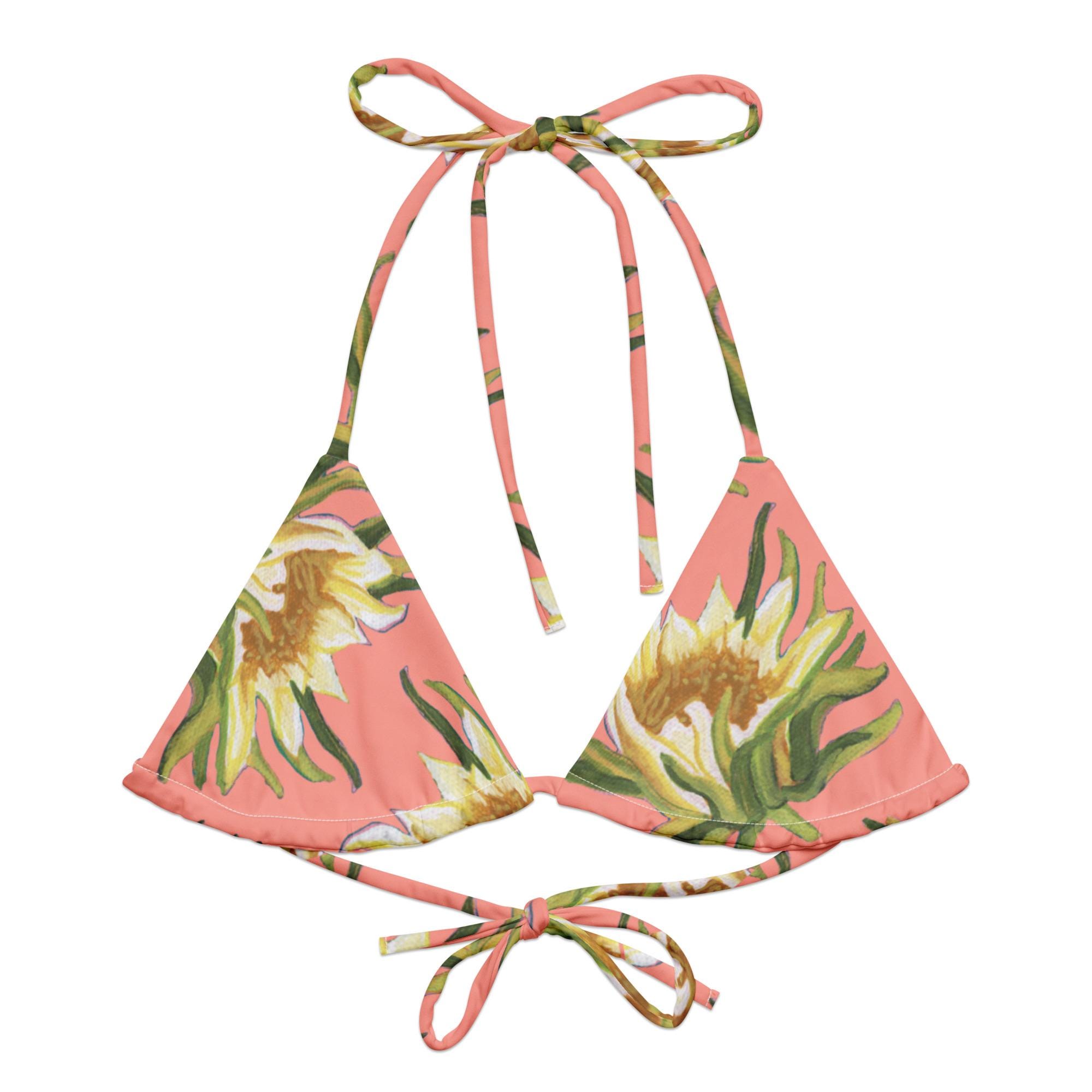 Dragonfruit Flower String Bikini Top Pink Pitaya Floral Print Women S Swimsuit Separates Etsy is a popular picture for sexy and hot.