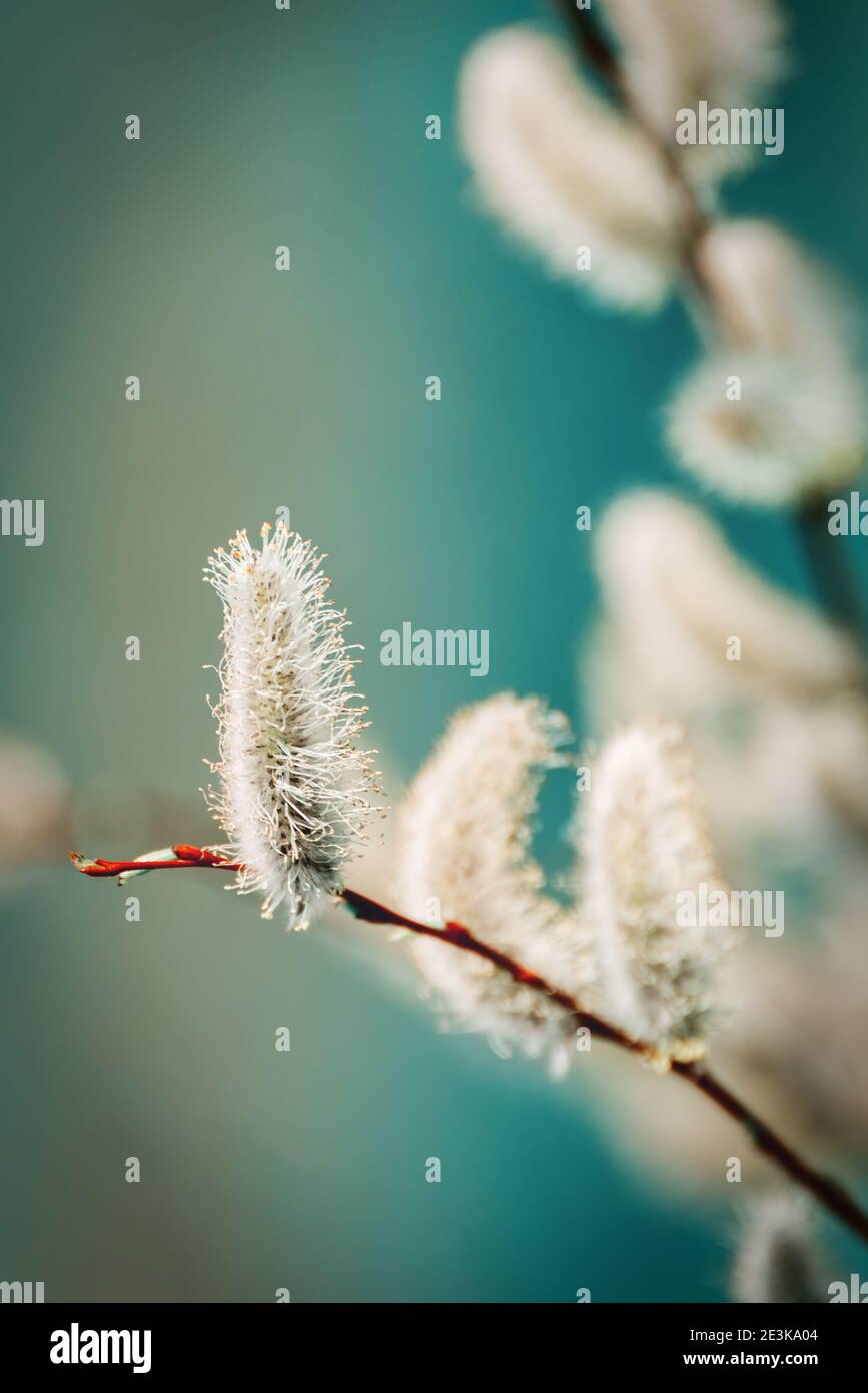 Early Spring Background In Creative Colors Pussy Willow Catkins Close Up Selective Focus Spring is a popular picture for sexy and hot.