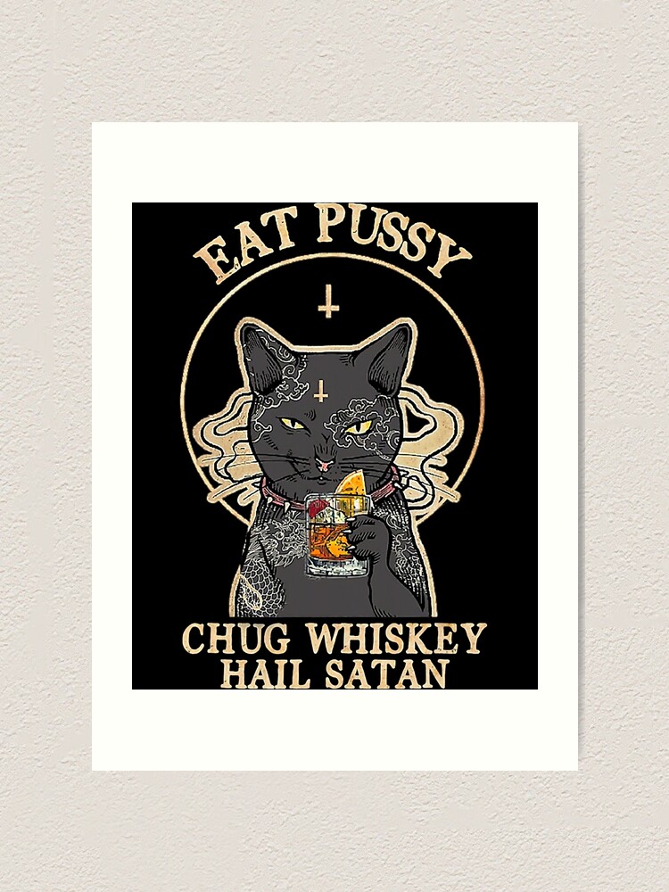 Eat Pussy Chug Whiskey Hail Satan Black Cat Satan Tattoo Art Print For Sale By Theresakessler is a popular picture for sexy and hot.