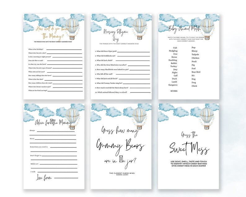 Tag : Editable Adventure Awaits Baby Shower Game Set Blue Hot Air Balloon Baby Shower Invite Boy