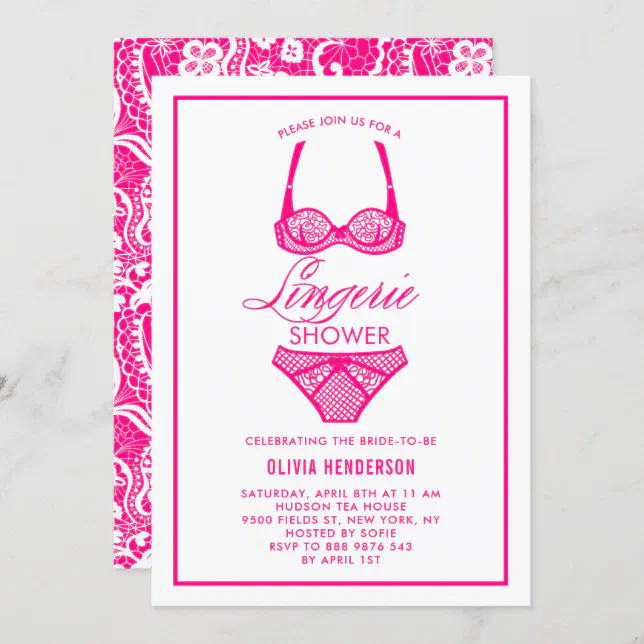 Tag : Elegant Hot Pink Lace Lingerie Shower Invitation Zazzle