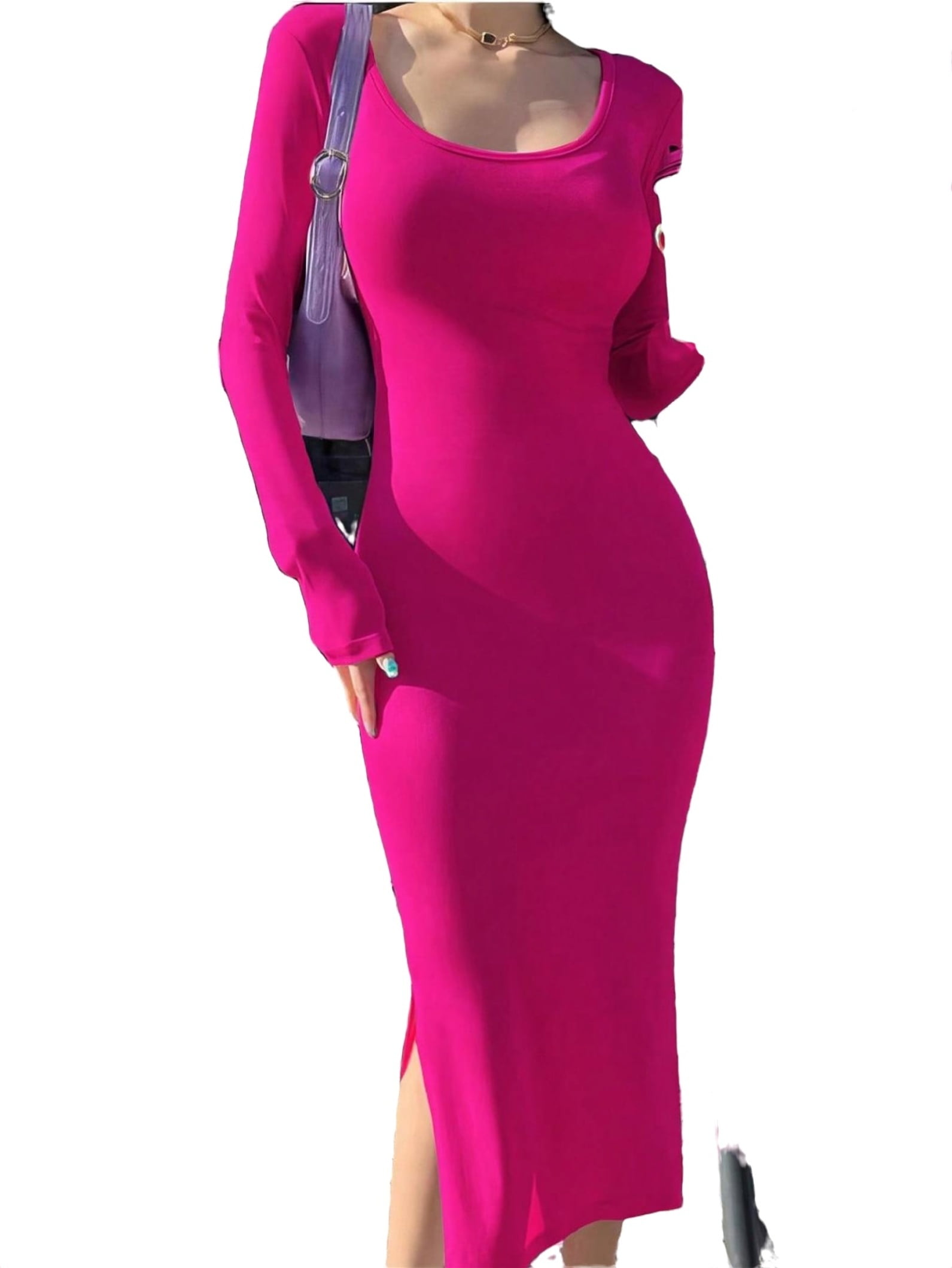 Elegant Solid Bodycon Scoop Neck Hot Pink Women Dresses Walmart is a popular picture for sexy and hot.