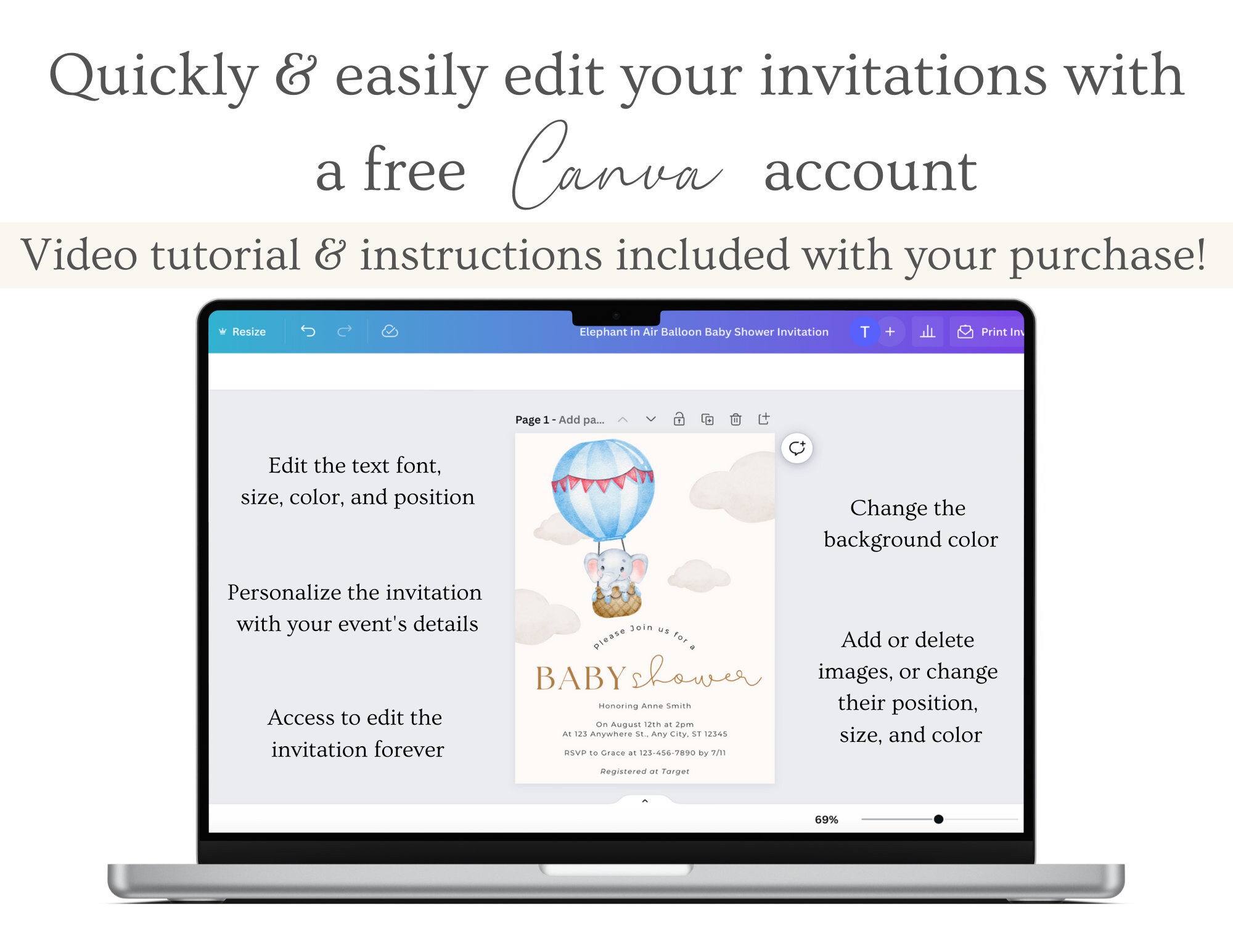 Tag : Elephant Baby Shower Invitation Elephant In Hot Air Balloon Baby Shower Invitation Baby Shower