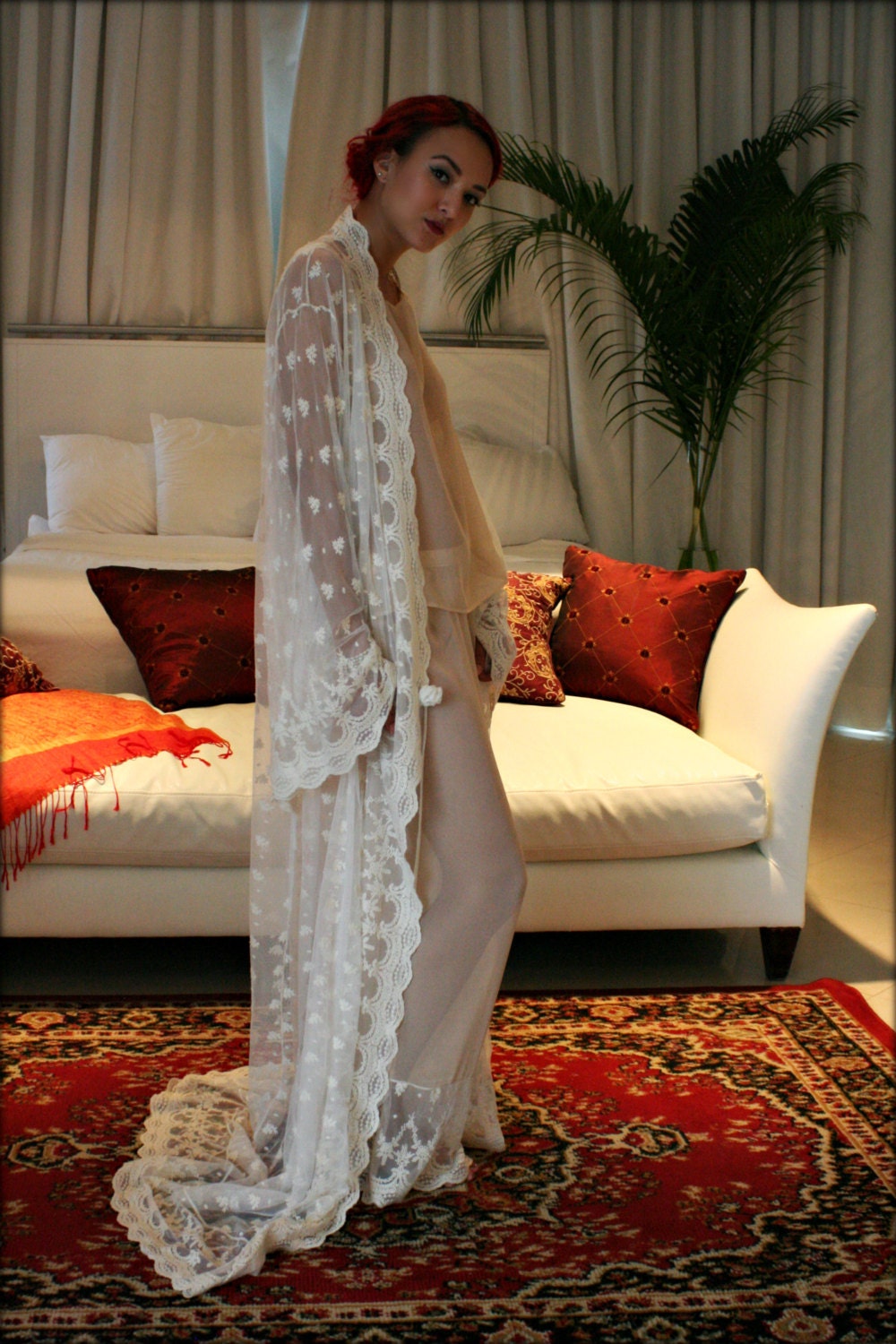 Tag : Embroidered French Lace Bridal Nightgown Panties Wedding Sleepwear Bridal Lingerie Set Ivory