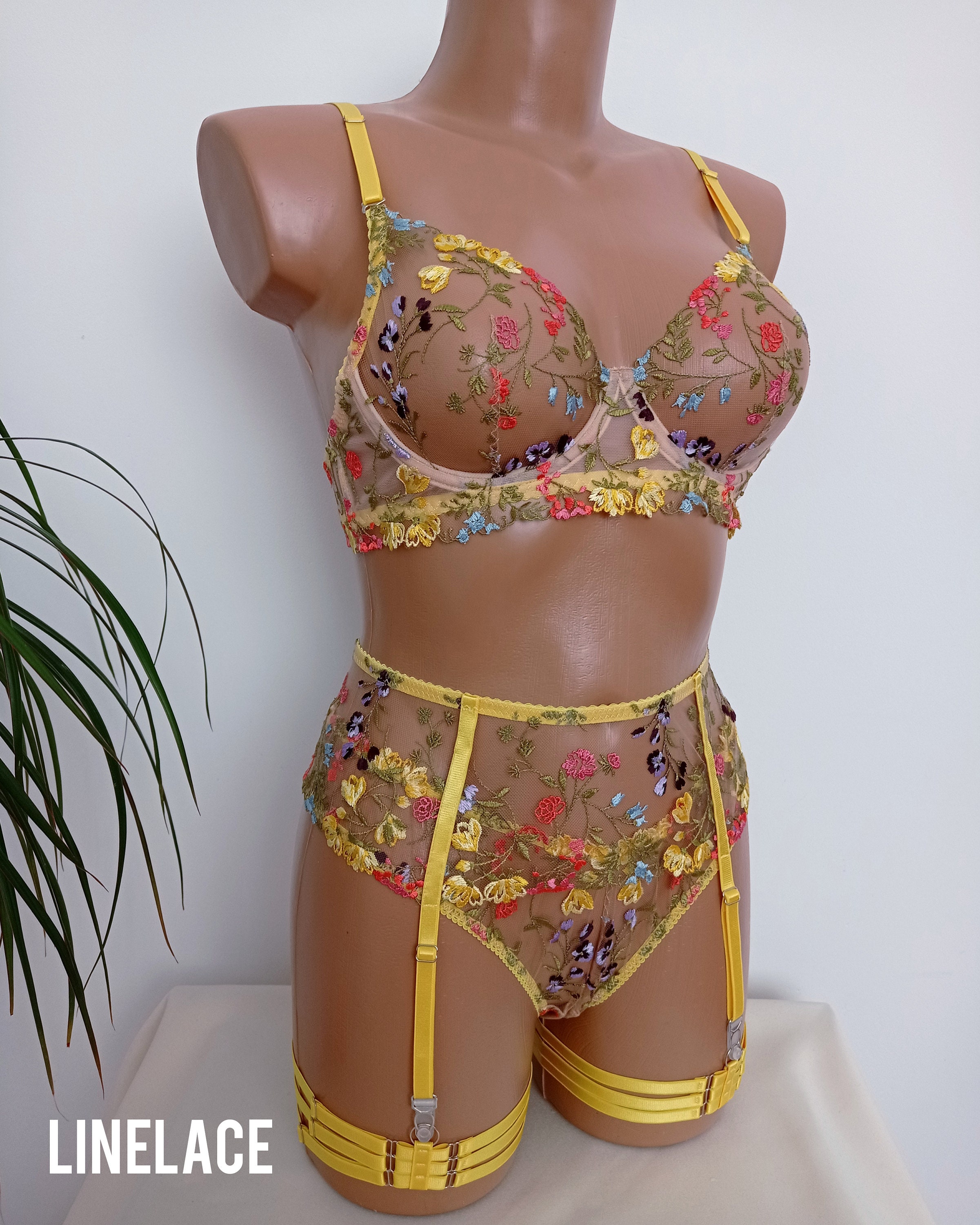 Embroidered Lingerie Set Floral Lingerie Set Mesh Bra Garter Belt Embroidery Lingerie is a popular picture for sexy and hot.