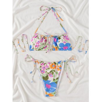 Emmiol Free Shipping Lace Up Floral Halter Bikini Set Blue M In Bikini Sets Online Store is a popular picture for sexy and hot.