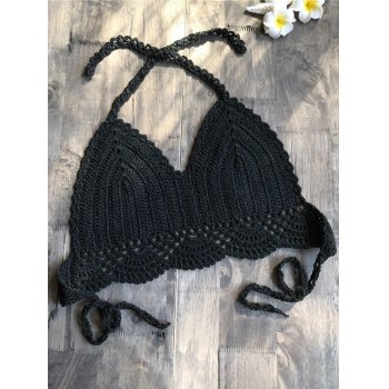 Emmiol Free Shipping Solid Color Halter Crochet Bikini Top Black S In Bikini Tops Online 59488