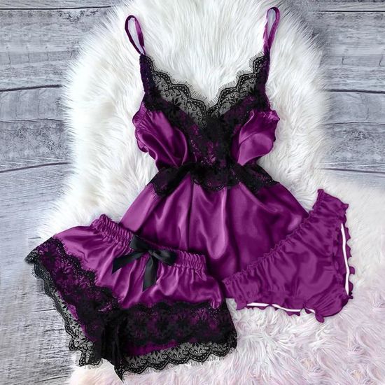 Ensembles De Lingerie Femmes Col En V Cils Dentelle Sexy Tache Camisole Pyjamas Bowknot Shorts is a popular picture for sexy and hot.