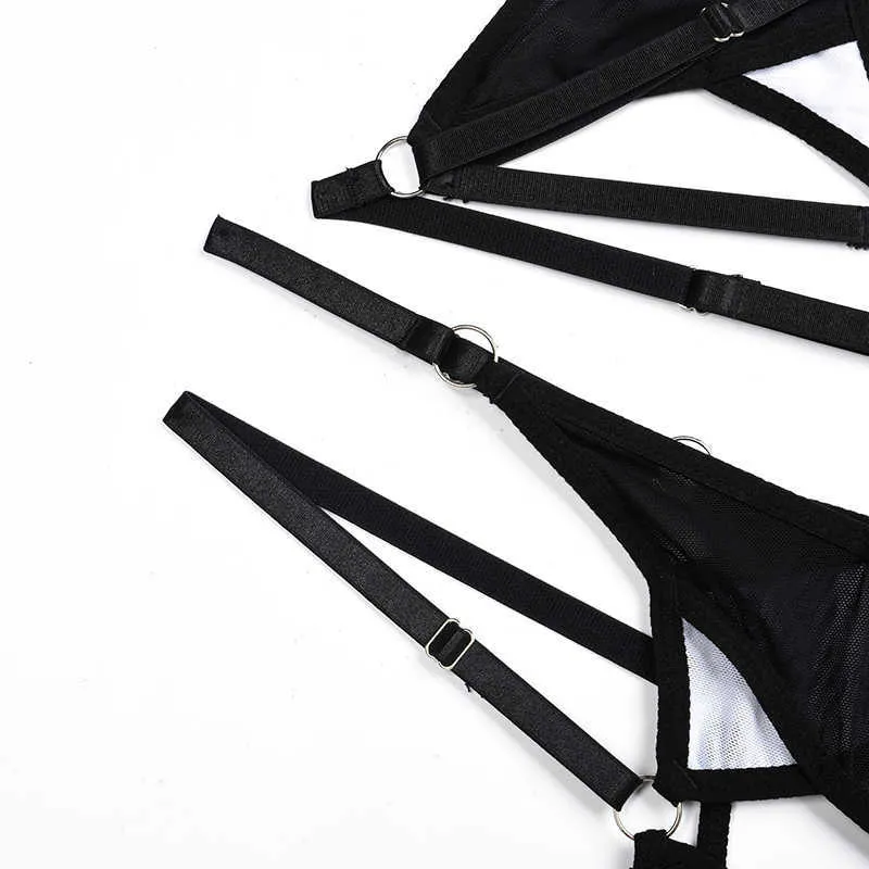 Tag : Exotic Crotchless Lingerie Set With Geometric Patterns And Open Transparent Bra Panty Set