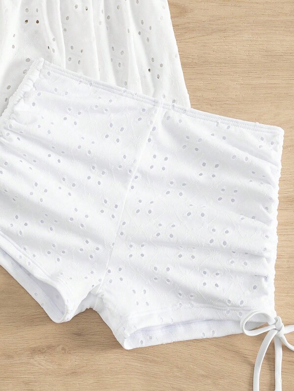 Eyelet Embroidery Drawstring Side Shorts Bikini Swimsuit Shein Usa is a popular picture for sexy and hot.