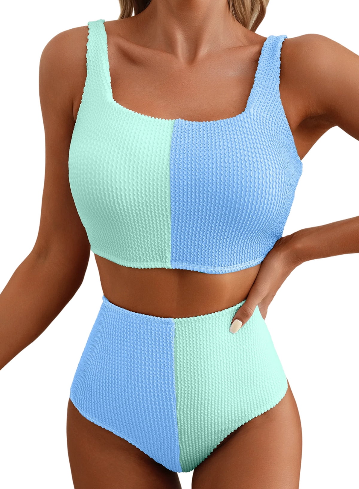Eytino Womens Bikini Swimsuits Piece Swimsuit For Women Color Block Scrunch Square Neck High is a popular picture for sexy and hot.