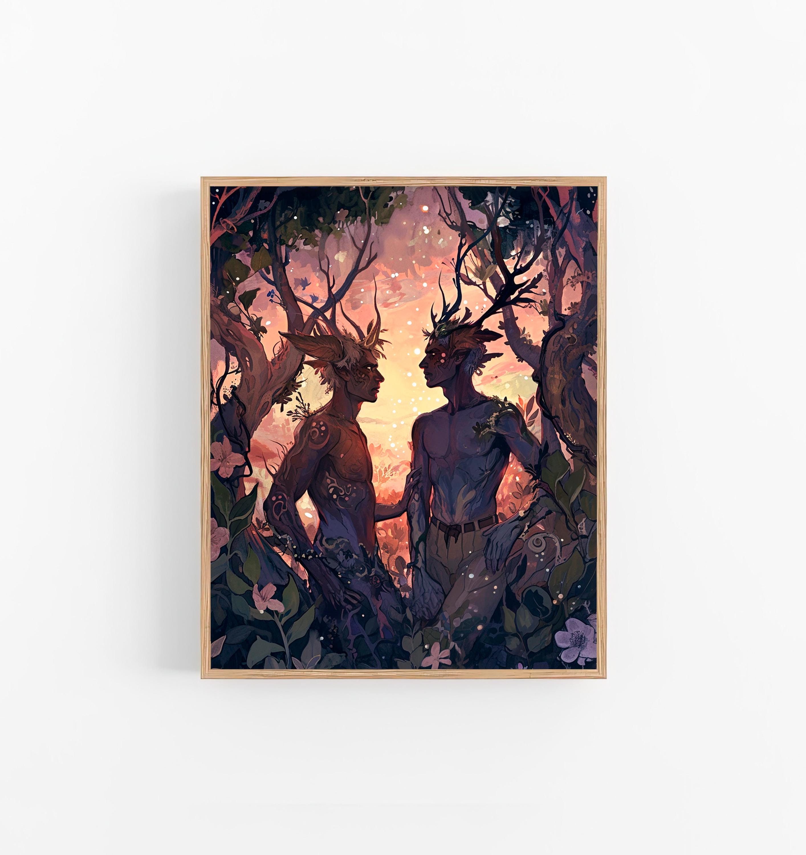 Tag : Fairies Male Body Art Print Gay Watercolor Painting Fairy Tale Artwork Forest Fairy Wall Art