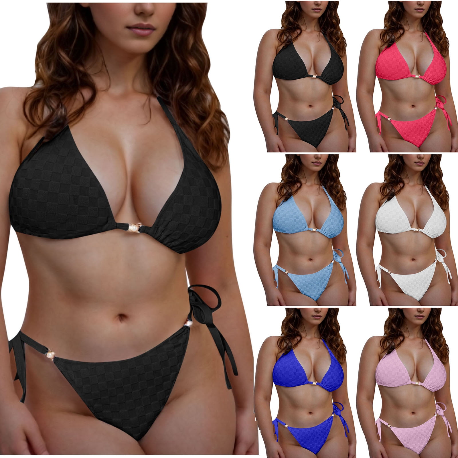 Feancey Side Tie Bikini Sets For Women Triangle String Halter Two Piece Bathing Suits Summer is a popular picture for sexy and hot.