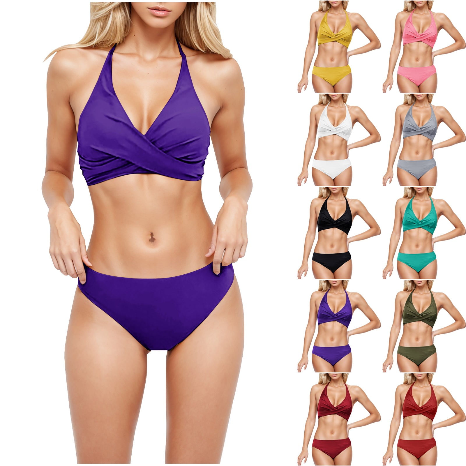 Feancey Women S Swimsuit Piece Halter Triangle Bikini Sets Deep V Push Up Bathing Suits Solid is a popular picture for sexy and hot.