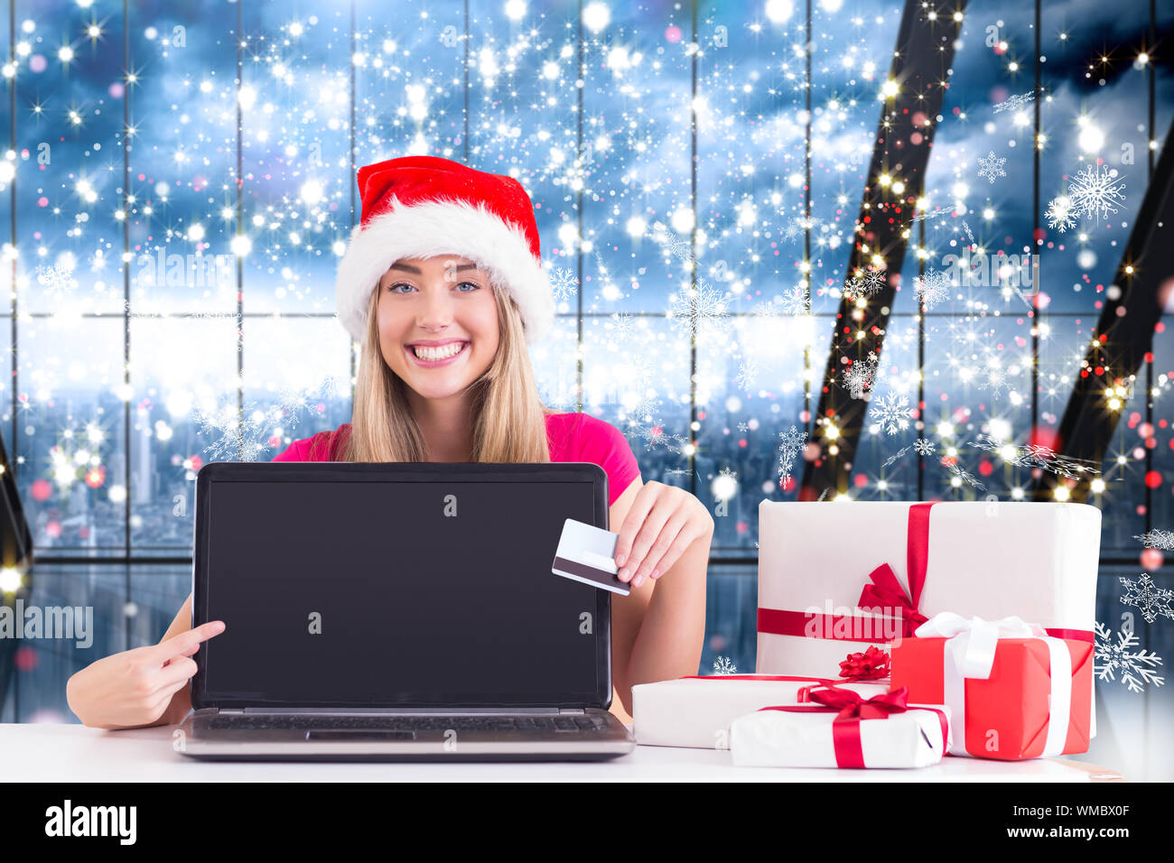 Tag : Festive Blonde Shopping Online With Laptop Against Glittering Lights In Room Stock Photo Alamy