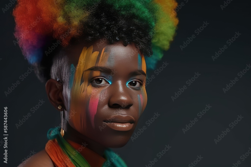 Fictional Ai Black Queer Person In Rainbow Colors At Gay Pride Non Binary Androgynous 144925