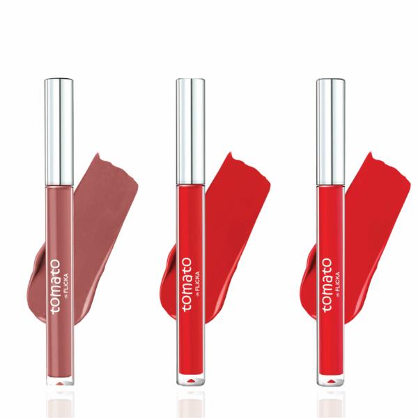 Tag : Flicka Tomato Liquid Lipstick Set Nude Tomato Red Crimson Red Non Transfer Liquid Matte