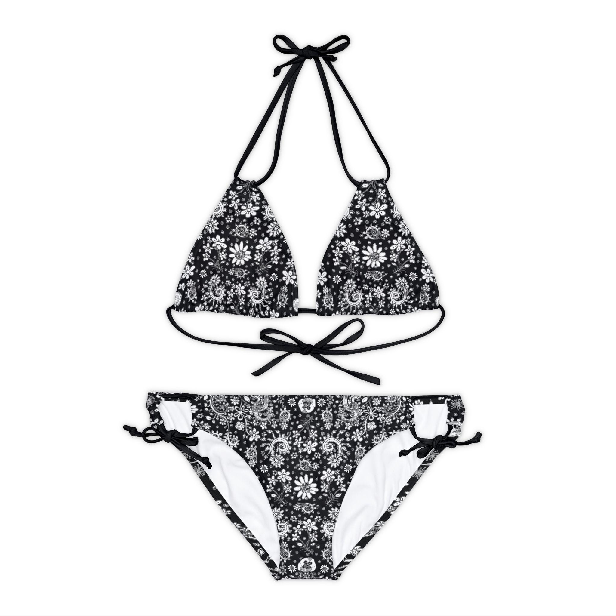 Tag : Floral Bikini Set Black White Flowers Artwork Pretty Fun Art On Bathing Suit Top Bottom Set Cute