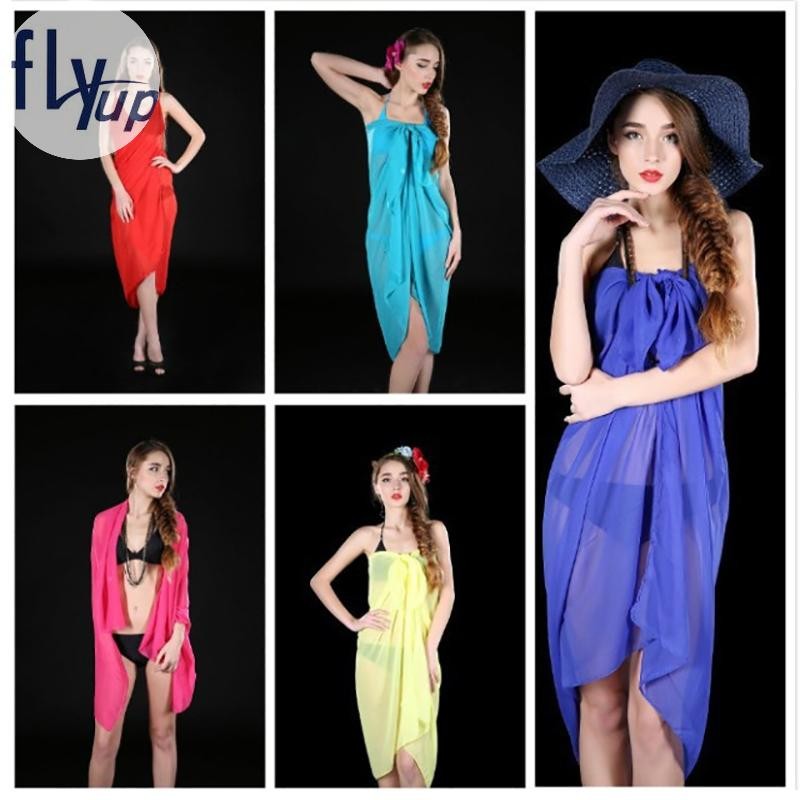 Tag : Flyup Summer Beach Long Sarong Swimsuit Coverups Bikini Wrap Sheer Many Solid Colors Skirt Scarf