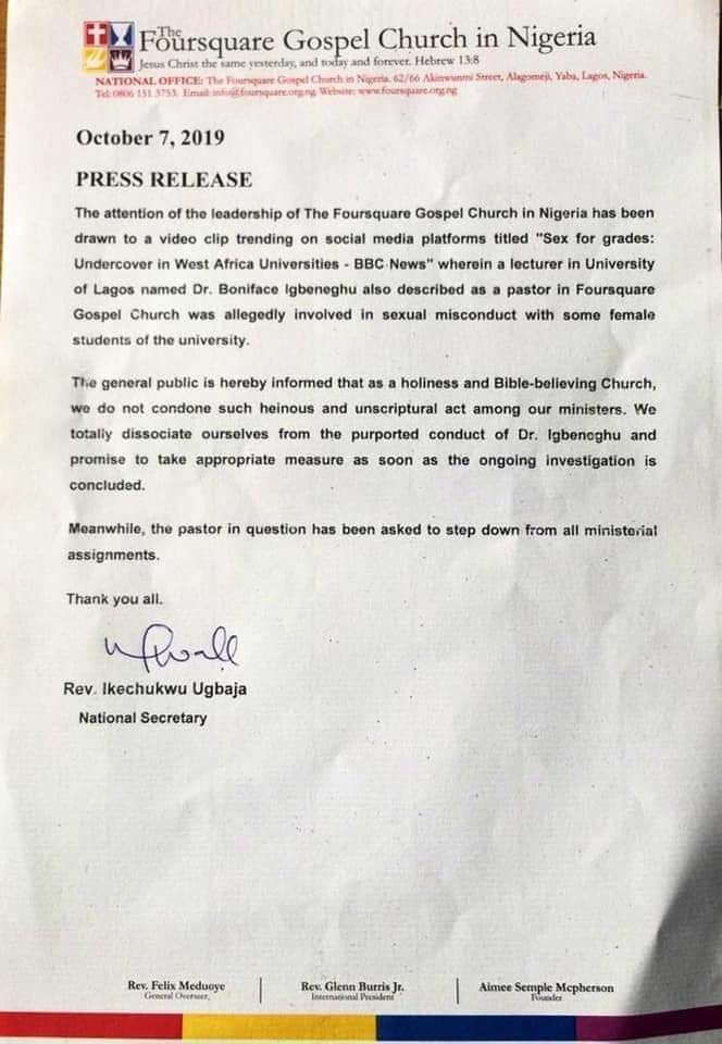 Foursquare Church Asks Pastor Boniface Igbeneghu To Step Down Over Sex For Grade Scandal is a popular picture for sexy and hot.