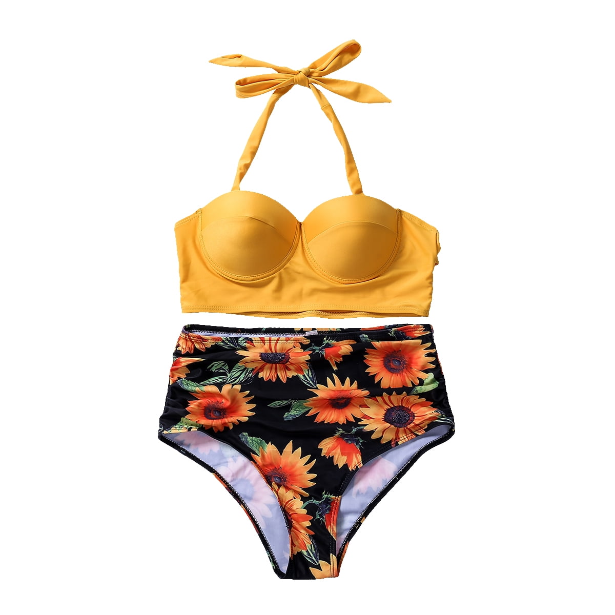 Related pictures for Franhais Women Push Up Bikini Set Summer Slim Flower Print Female High Waist Swimming Suits