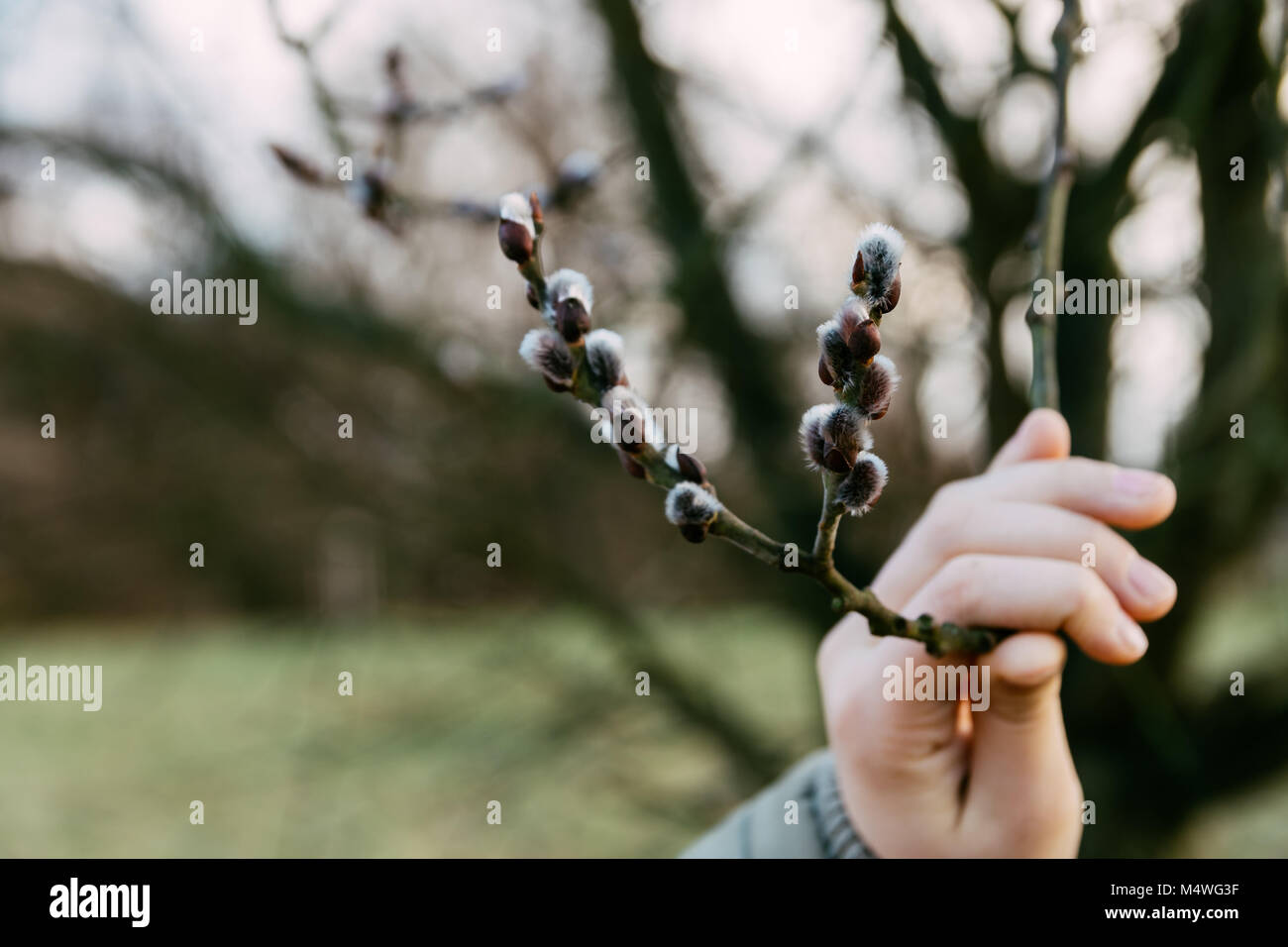 Tag : Fresh Flowering Pussy Willow Branches In A Hand Spring Grass On Background Stock Photo Alamy