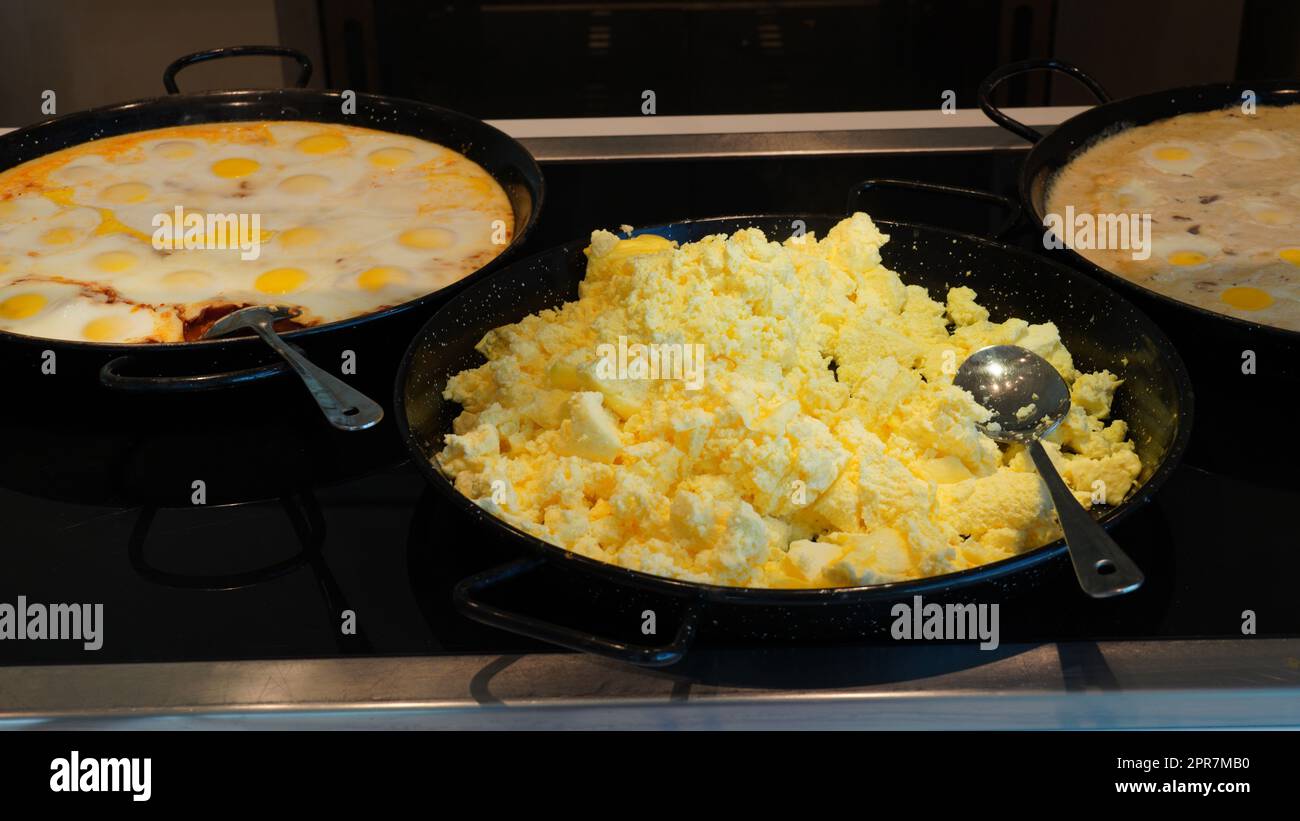Tag : Fried And Scrambled Eggs And Omelette In A Self Service Buffet With Hot Breakfast In The Hotel