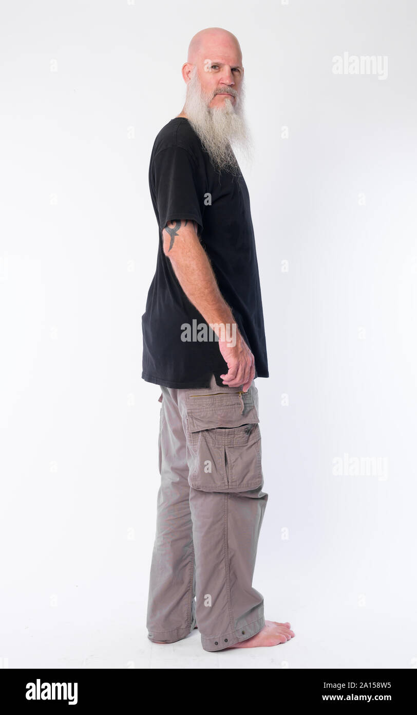 Full Body Shot Profile View Of Mature Bald Bearded Man Looking At Camera Stock Photo Alamy 199080