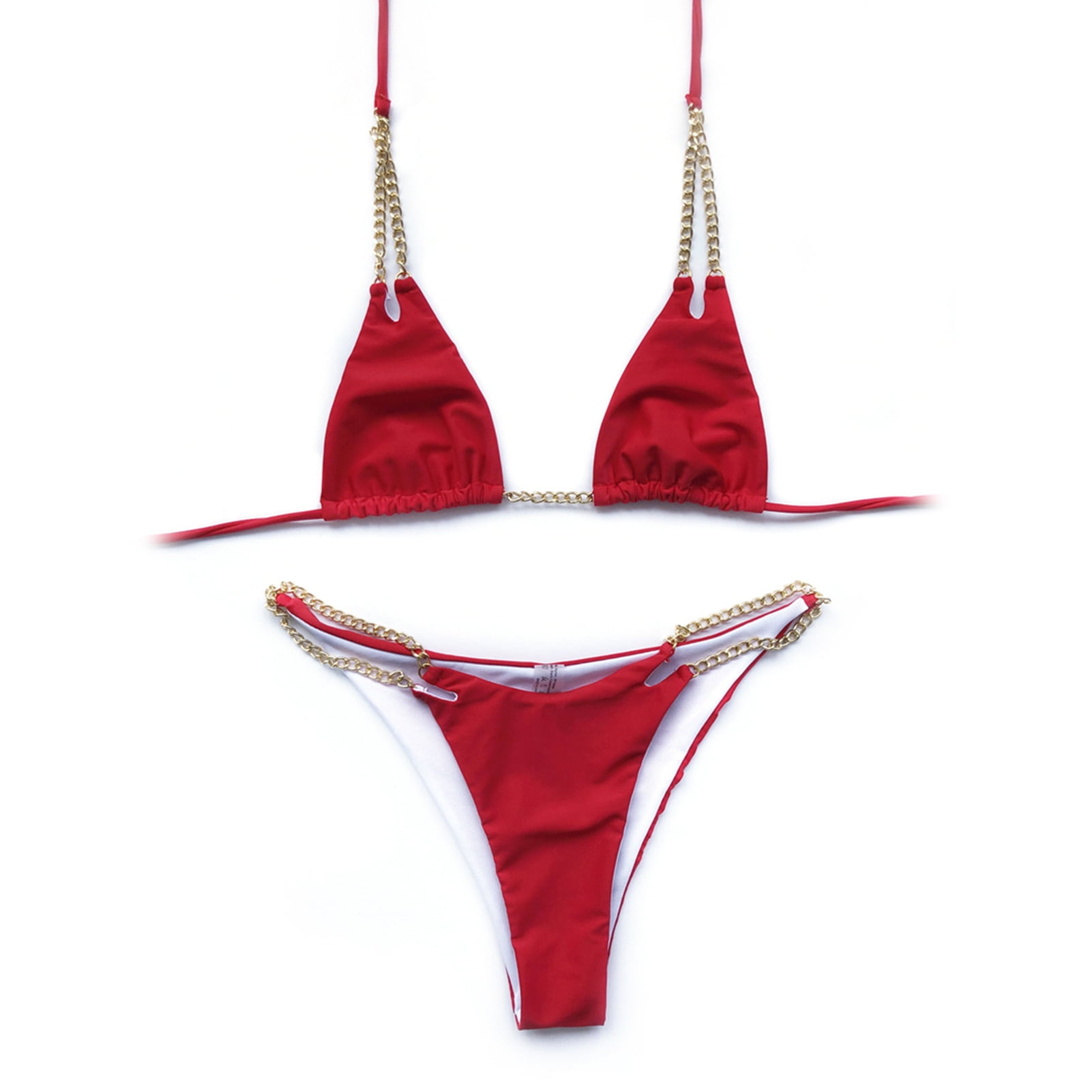 Fusipu Women Metal Chain Lacing Halter Bra Triangle Underwear Swimsuit Bikini Set For Swimming is a popular picture for sexy and hot.