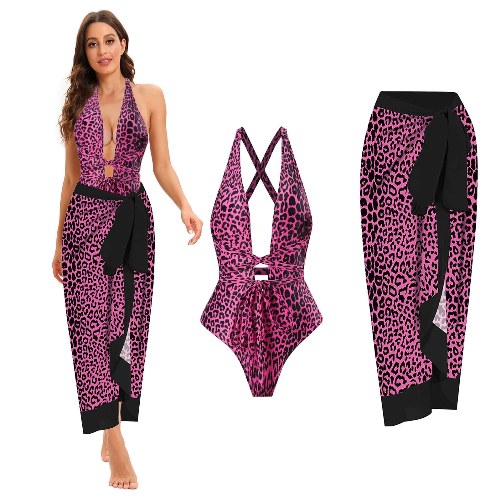 Gaecuw One Piece Bathing Suit For Women With Cover Up Bikini Wrap Skirt Sleeveless Swimwear Top