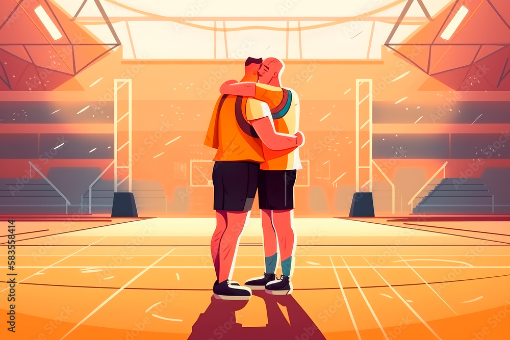 Tag : Gay Male Basketball Player Couple In Love Embracing On Basketball Court And Celebrating Their
