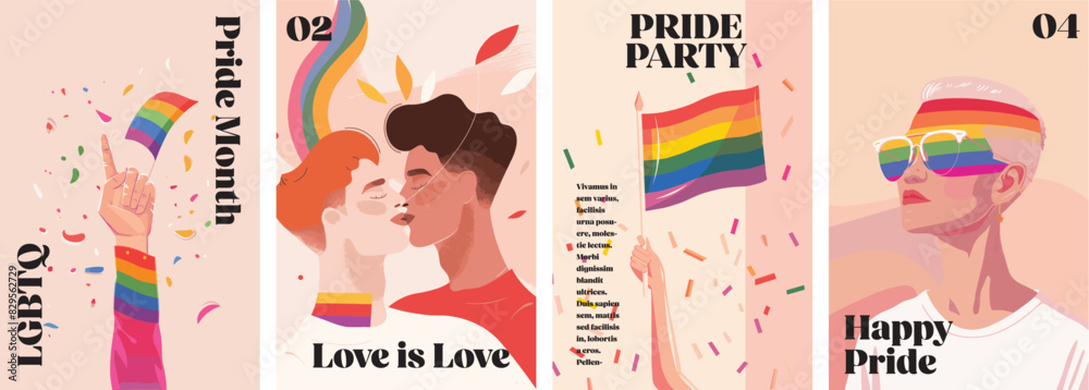 Gay Pride Month Poster Design Collection Set Of Banners For Lgbtq Pride Celebration Stock