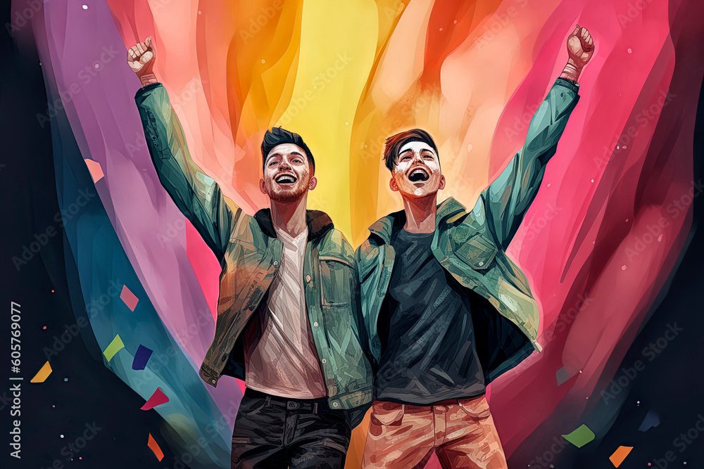 Generative Ai Illustration Of Portrait Of Two Gay Men In Love And Very Excited In The Streets pictures has 500 x 400 · 50 kB · jpeg.
