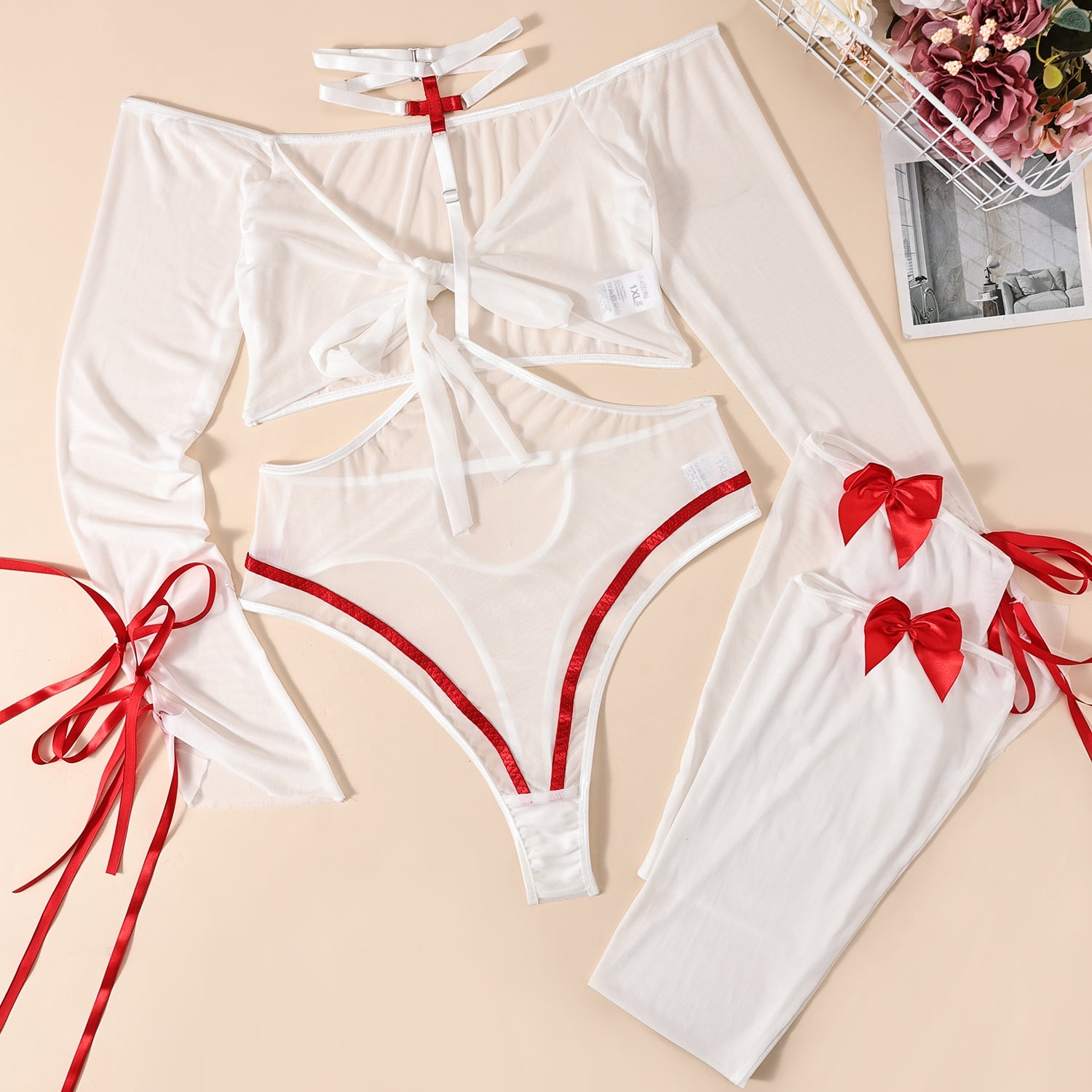 Related pictures for Generic Ins High End Quality Bow Embroidery Hollow Corrugated Sexy Lingerie Suit
