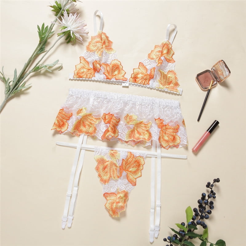 Generic New Arrival Hot Sale Sexy Lingerie Sexy Women S Embroidered Flower Garter Three Piece is a popular picture for sexy and hot.