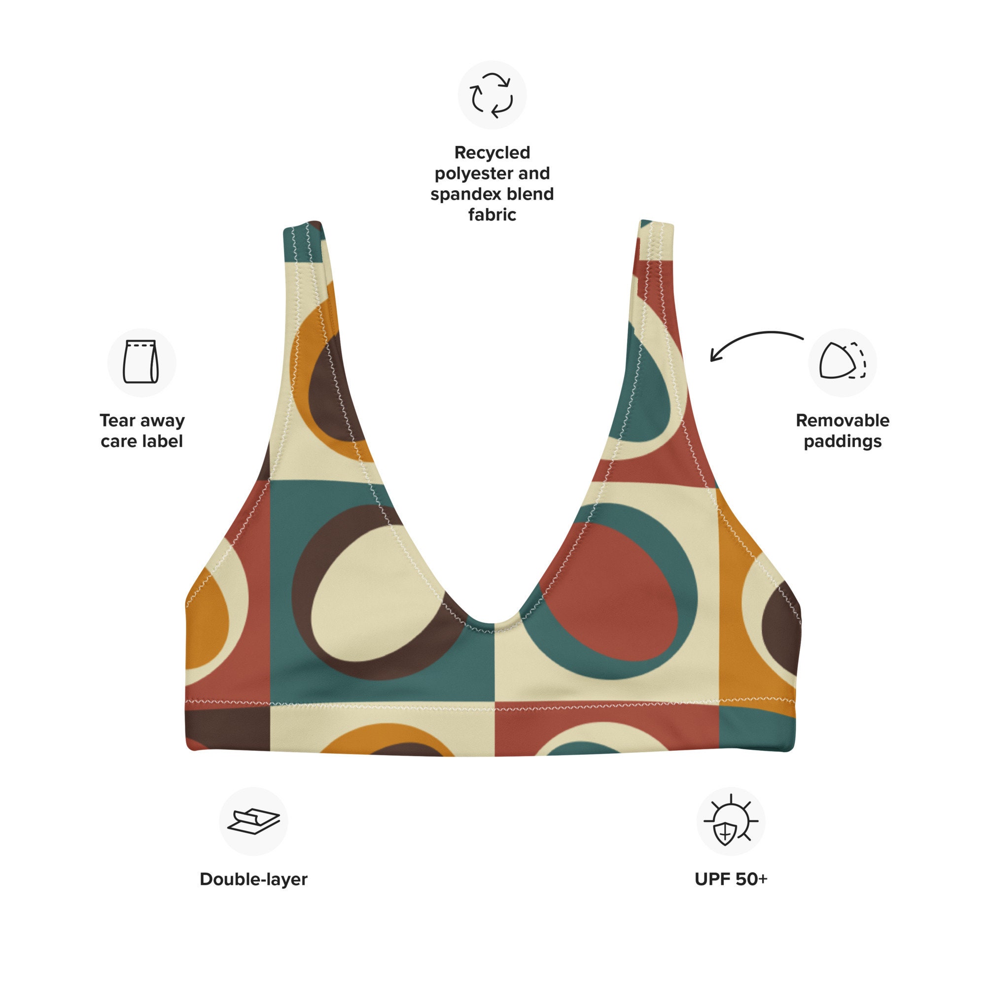 Geometric Shapes In Retro Colors Recycled Bikini Top Cute Aesthetic Retro Two Piece Top Mid is a popular picture for sexy and hot.