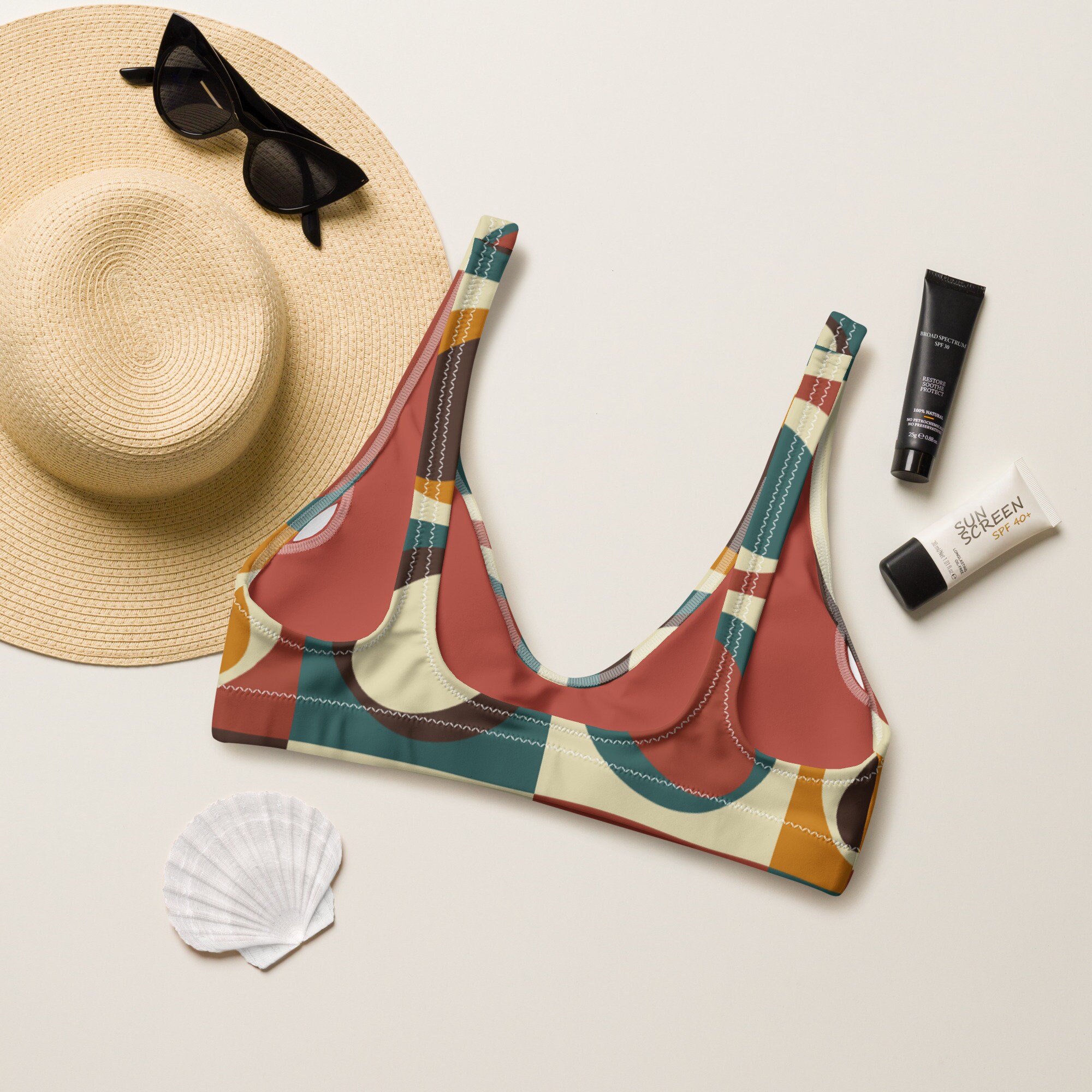 Tag : Geometric Shapes In Retro Colors Recycled Bikini Top Cute Etsy