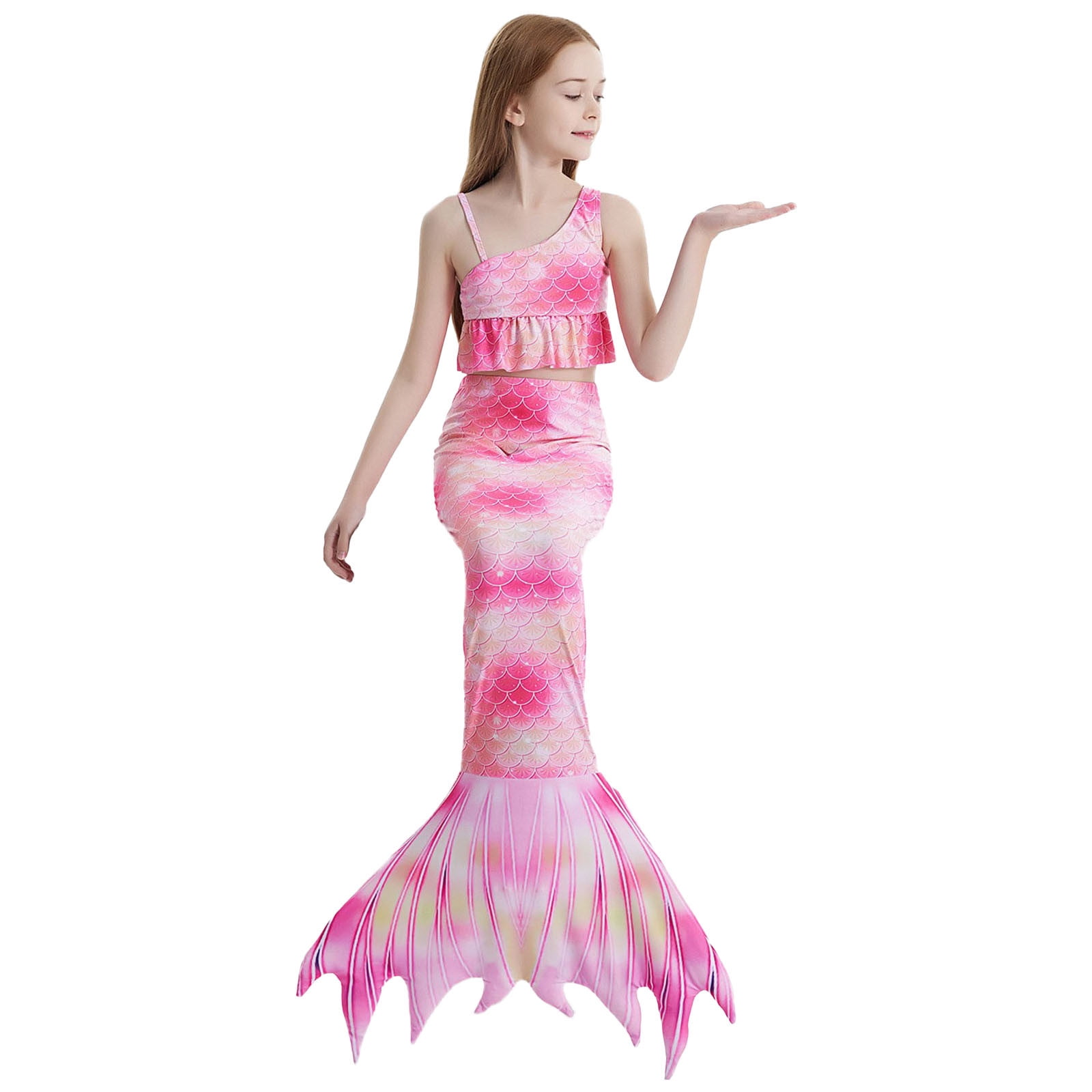 Girls Swimsuit Size Colorful Ruffles Flounce Printed Bikini Set Bikini Fish Tail Set Bathing 57776