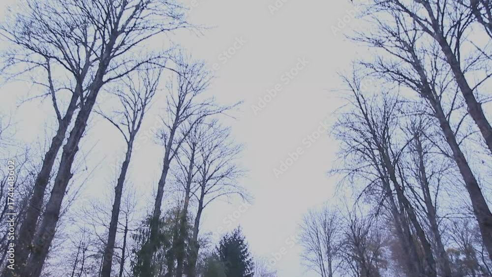 Tag : Gloomy Sky Over The Autumn Park Naked Tree Branches Against The Background Of A Dull Sky In An